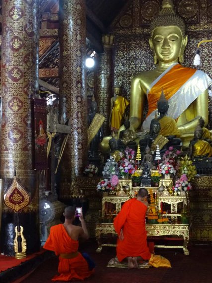 Auch die unzähligen goldenen Vats, mit ihrer speziellen Bauweise sind einen Besuch wert. So zum Beispiel der Wat Xieng Thong, der älteste und bedeutendste Tempel der Stadt. (Eintritt 20.000 Kip).