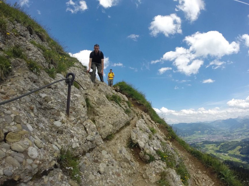 Belohnt werdet ihr dabei nicht nur von einem super schönen Ausblick über die Allgäuer Alpen. Auch ein kleiner Schuss Adrenalin ist auf dieser Tour garantiert.